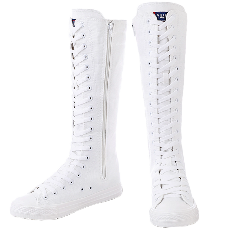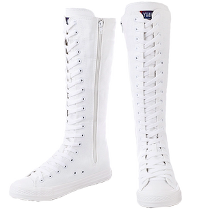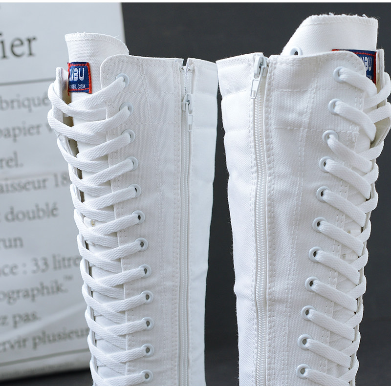 2020韩版 长筒靴子显瘦大长腿帆布靴街拍 高帮内增高休闲高筒帆布鞋