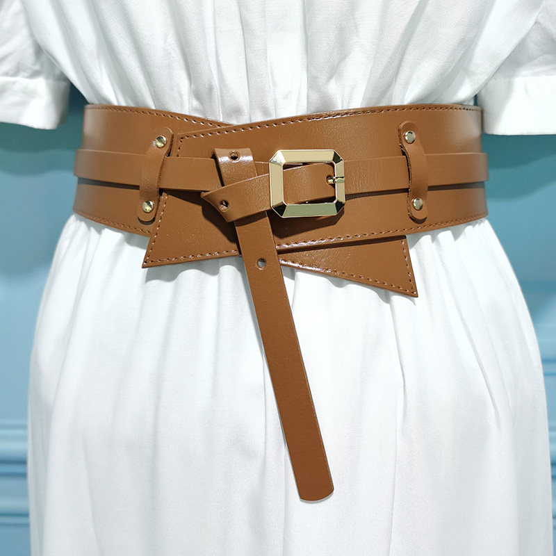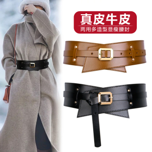 牛皮宽腰带女士真皮装 配裙子毛衣收腰咖色欧美腰封 饰百搭大衣西装