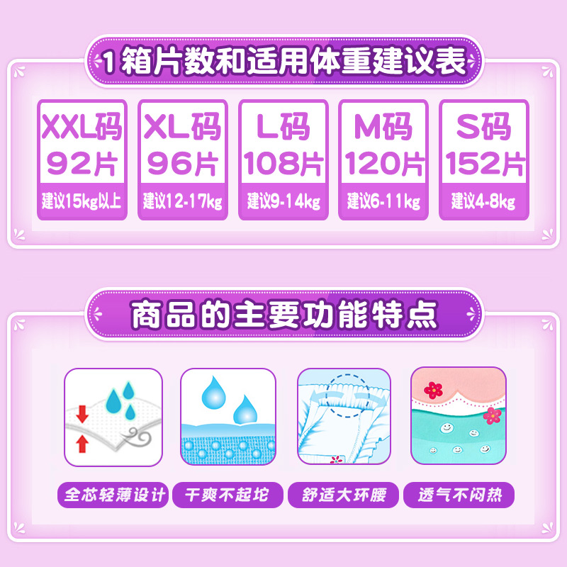 XXXL尿不湿XL中大童XXL新生S正品 宜婴空调纸尿裤 L超薄透气拉拉裤