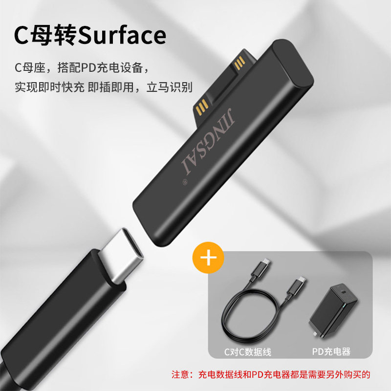 景赛适用于微软Surface充电线PD快充C母转Pro7654电源15V线go2电脑book3平板laptop笔记本Connect接口充电器
