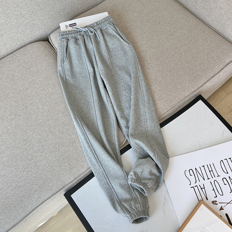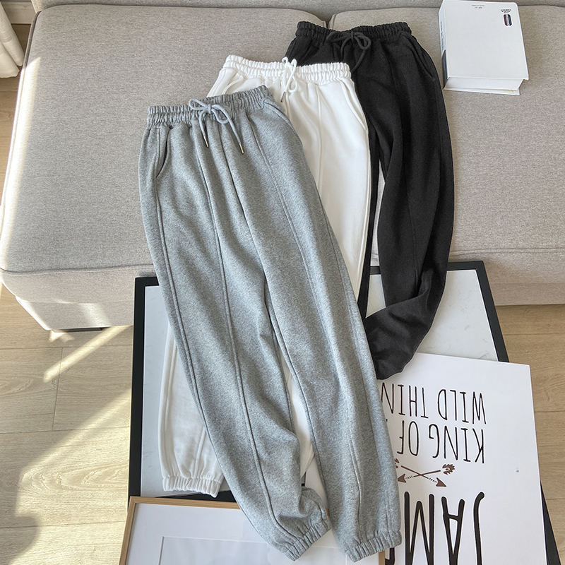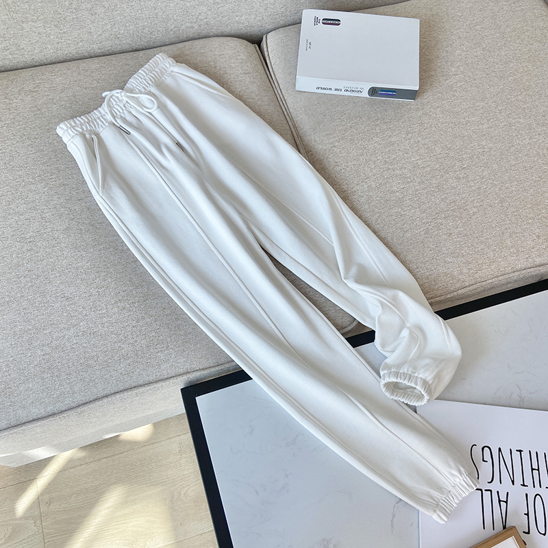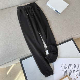 宽松显瘦棉内胆毛圈束脚运动女裤 女 百搭休闲卫裤 2022春秋新韩版