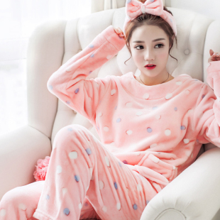 冬天女士可爱家居服 毛绒法兰绒加厚秋冬套装 睡衣女珊瑚绒冬季 冬款