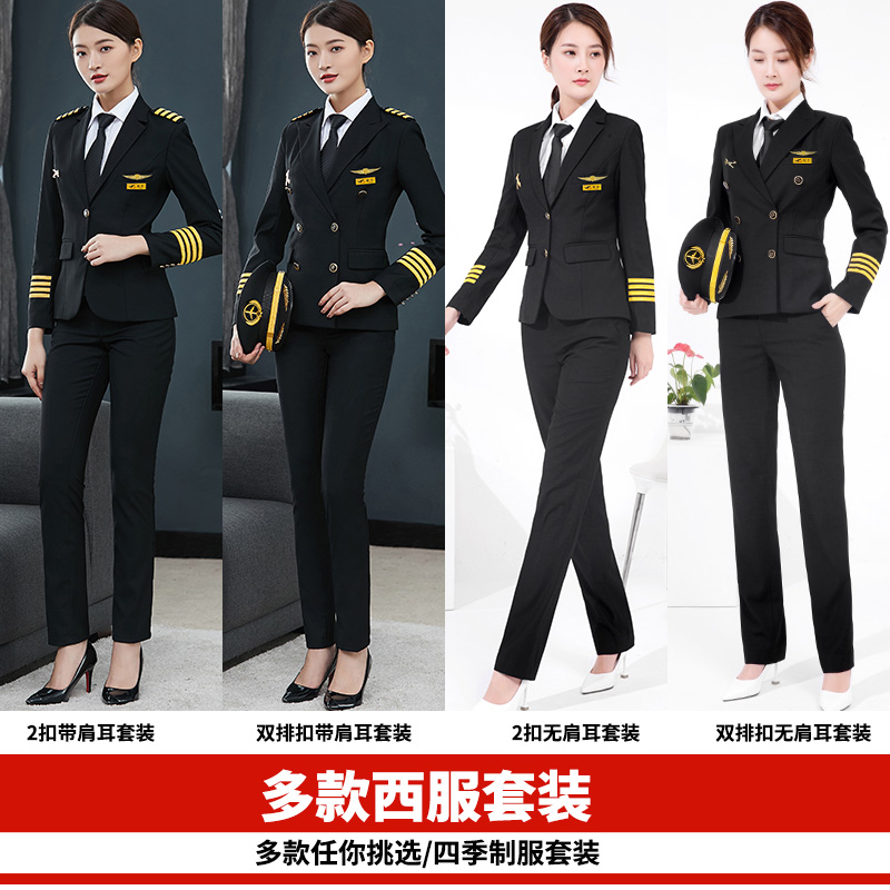 飞行员工作服 售楼酒店前台收银乘务员西装 机长航空制服套装 职业装