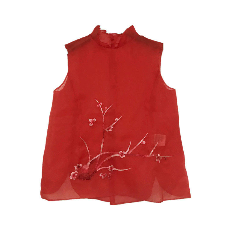 夏姿风经典 少女感古典刺绣立领花边真丝欧根纱微透马夹背心 特