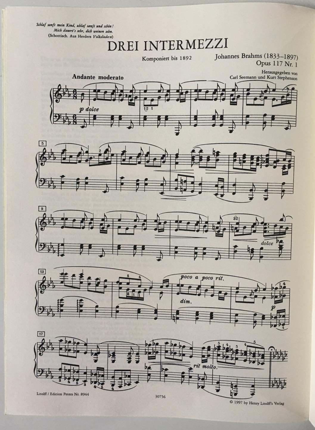 Brahms 三首间奏曲 进口乐谱书 勃拉姆斯 Piano 钢琴独奏 for Op117 EP8944 彼得斯原版 Intermezzi Johannes
