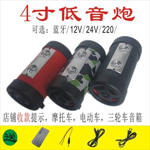 蓝牙低音炮音响4寸12V24V220伏圆形防水踏板电动电瓶车插卡摩托FM