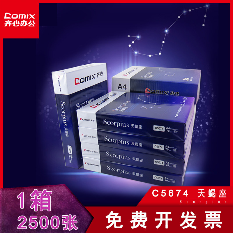 批发 包邮 齐心comixA4纸70克整箱5包装 2500张家用办公复印打印不卡纸80g学生草稿70克美术画画白纸多省