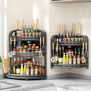 不锈钢厨房收纳架转角三脚架油盐酱醋多功能家用台面调味料置物架