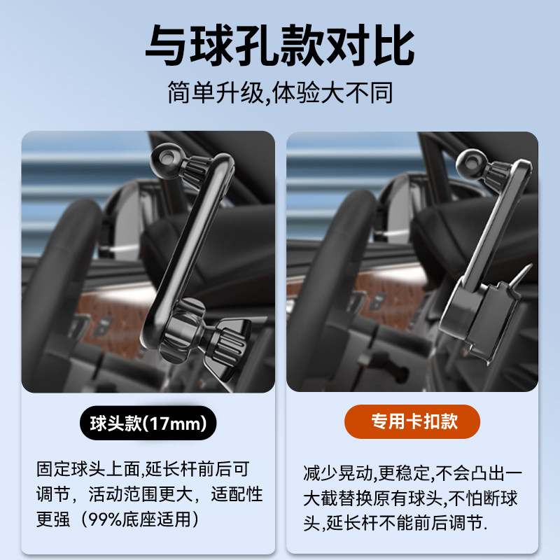 延长杆车载手机支架汽车屏幕底座不挡视线球头配件可旋转调节卡扣