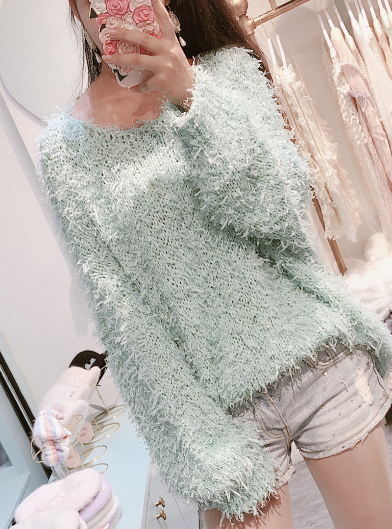 NZ0039 浪漫慵懒风宽松蓝色女套头毛衣针织衫 春季 网红超仙