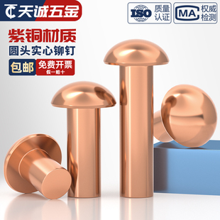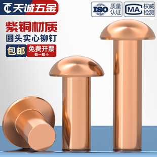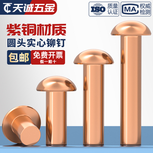 国标纯紫铜敲击式 帽铜钉全M2M3M4M5M6M8mm 实心圆头铆钉铜半圆头元