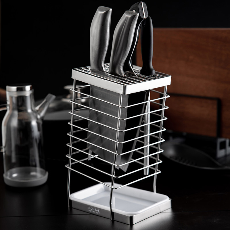 304不锈钢厨房刀架菜刀架置物架家用沥水台面放菜刀具刀座收纳架
