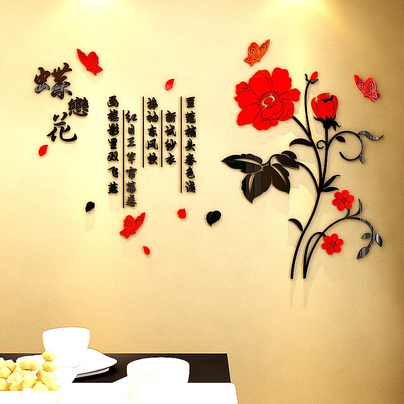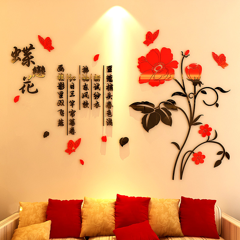 蝶恋花亚克力水晶3d立体墙贴画中国风创意电视背景墙餐客厅装 饰品