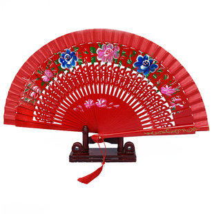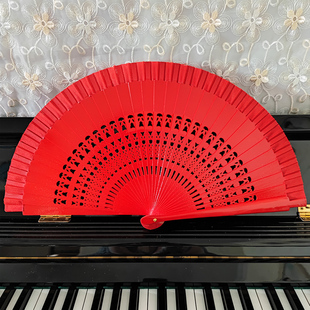 双面易开合折扇团体旗袍复古扇子走秀跳舞大红色模特舞蹈扇中国风