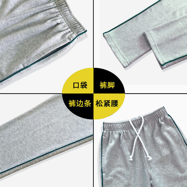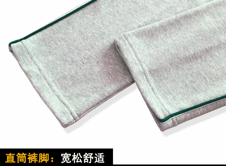 春秋 长裤 浅灰色纯棉墨绿色细杠学生裤 男女中学高中宽松直筒运动裤