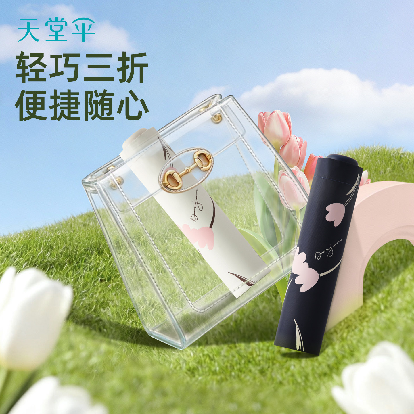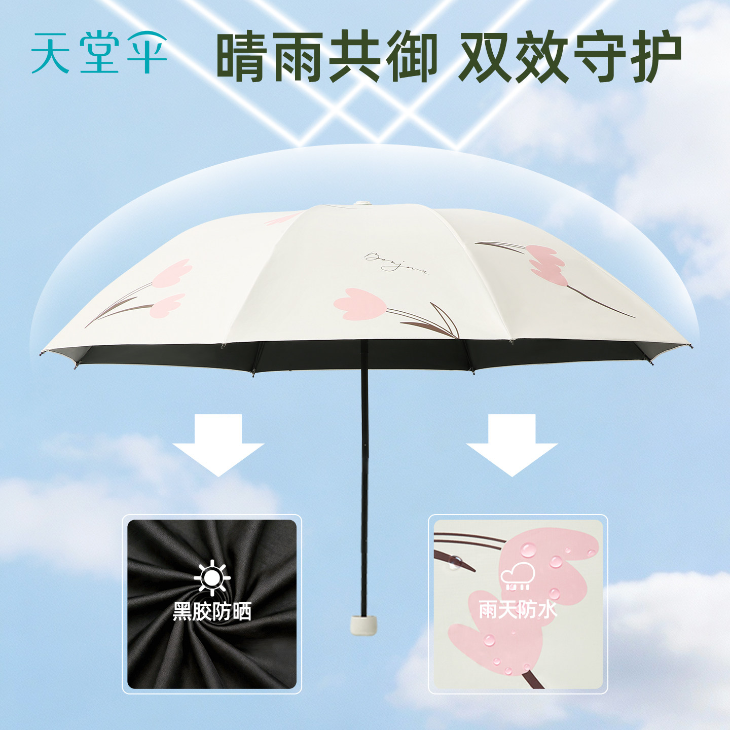 天堂伞黑胶防晒防紫外线遮阳伞晴雨伞两用樱花小伞折叠太阳伞男女