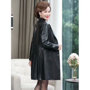 风衣中老年大码 新款 领绵羊皮修身 西装 外套 海宁真皮皮衣女士中长款