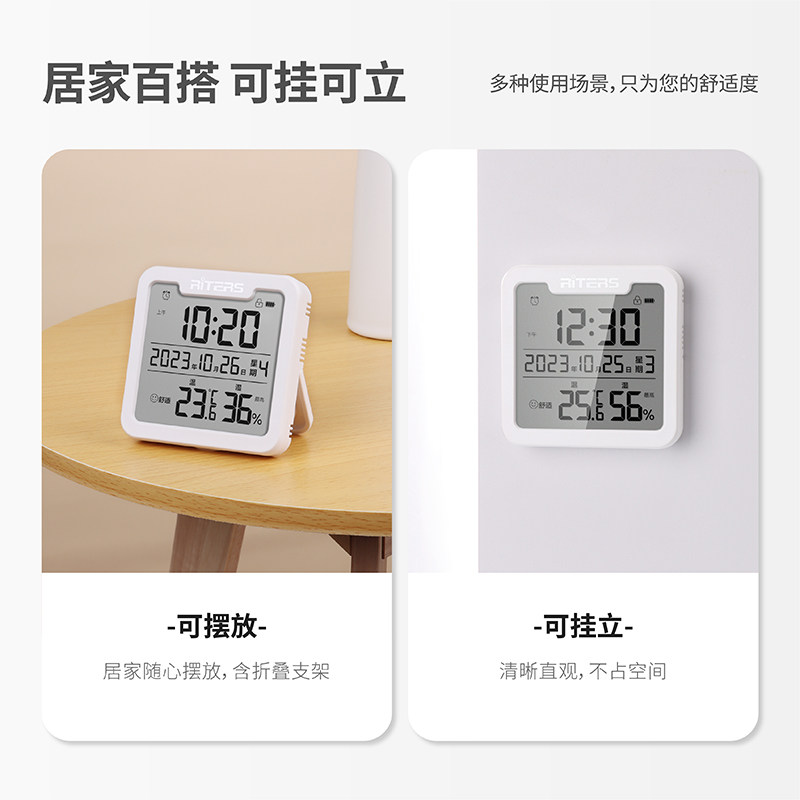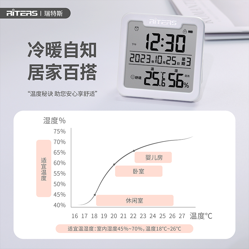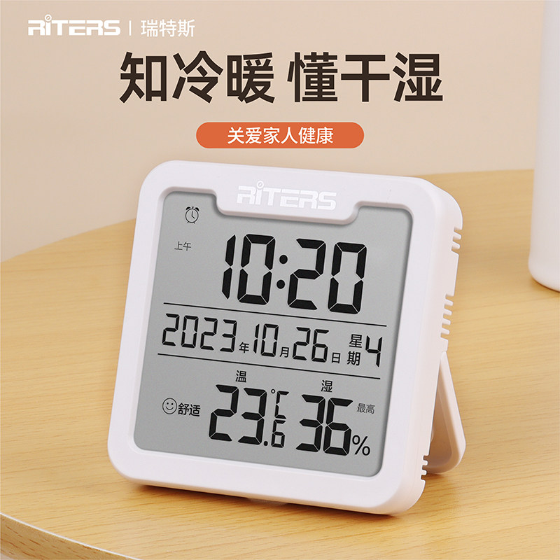 瑞特斯电子温湿度计家用室内婴儿房高精度温度表带时间日期闹钟