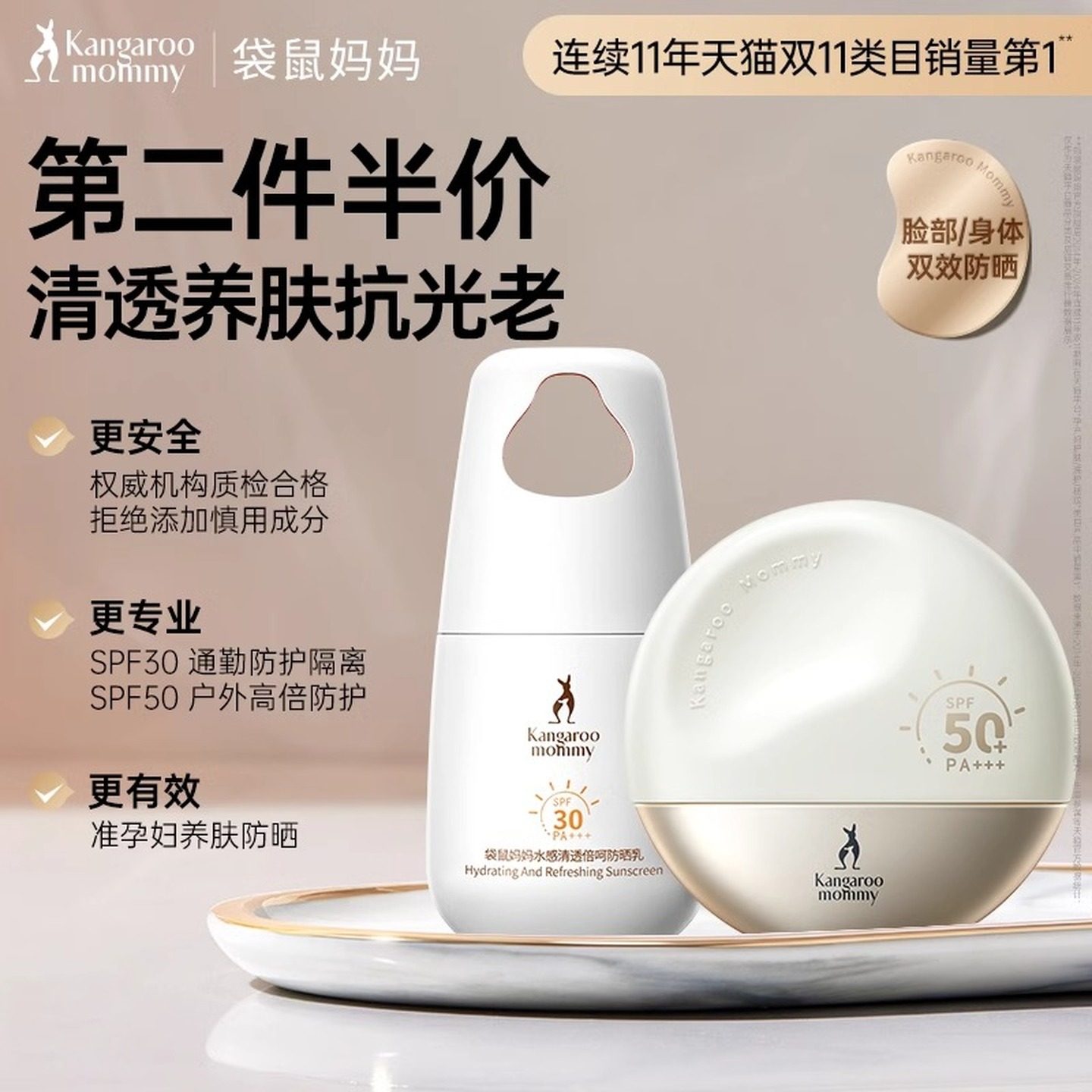 袋鼠妈妈准孕妇防晒乳专用提亮肤色面部高倍纯物理防晒隔离二合一