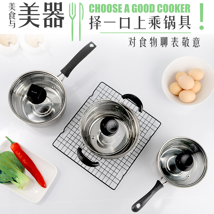 304不锈钢奶锅 家用宝宝辅食热牛奶锅加厚复底汤锅迷你小煮锅不沾