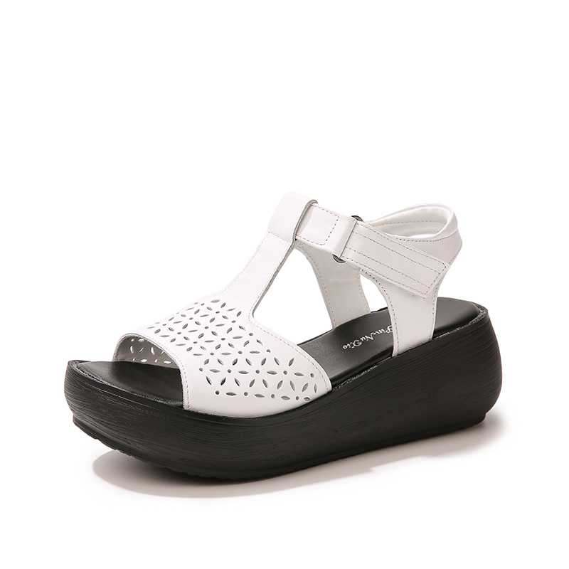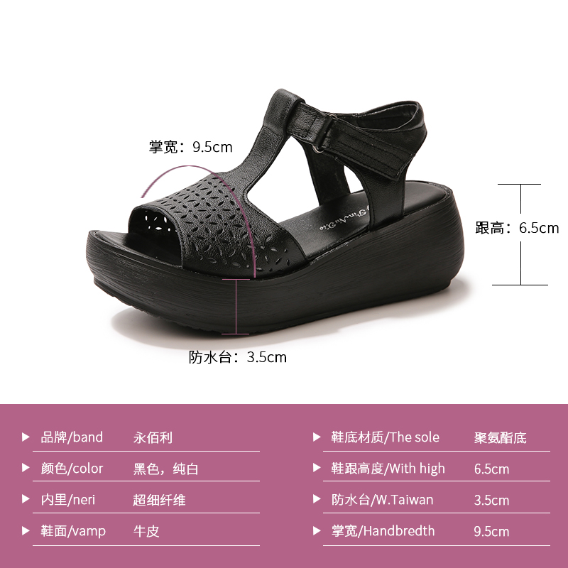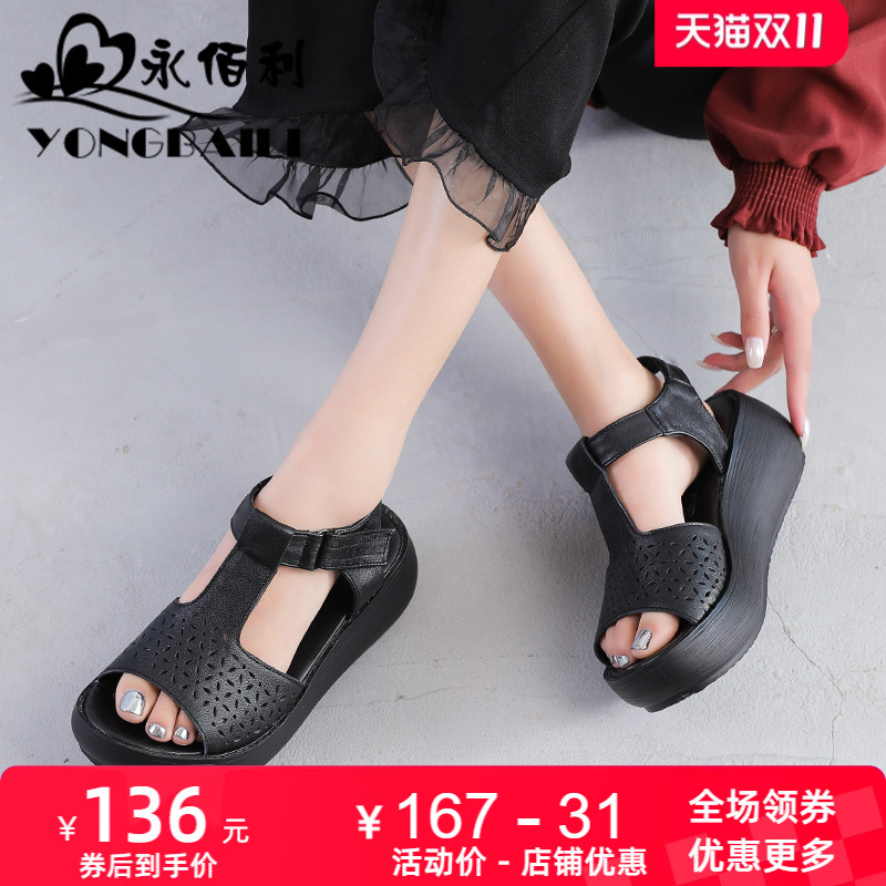 增高百搭软底鱼嘴皮鞋 永佰利真皮凉鞋 松糕厚底罗马鞋 新款 子 女夏季