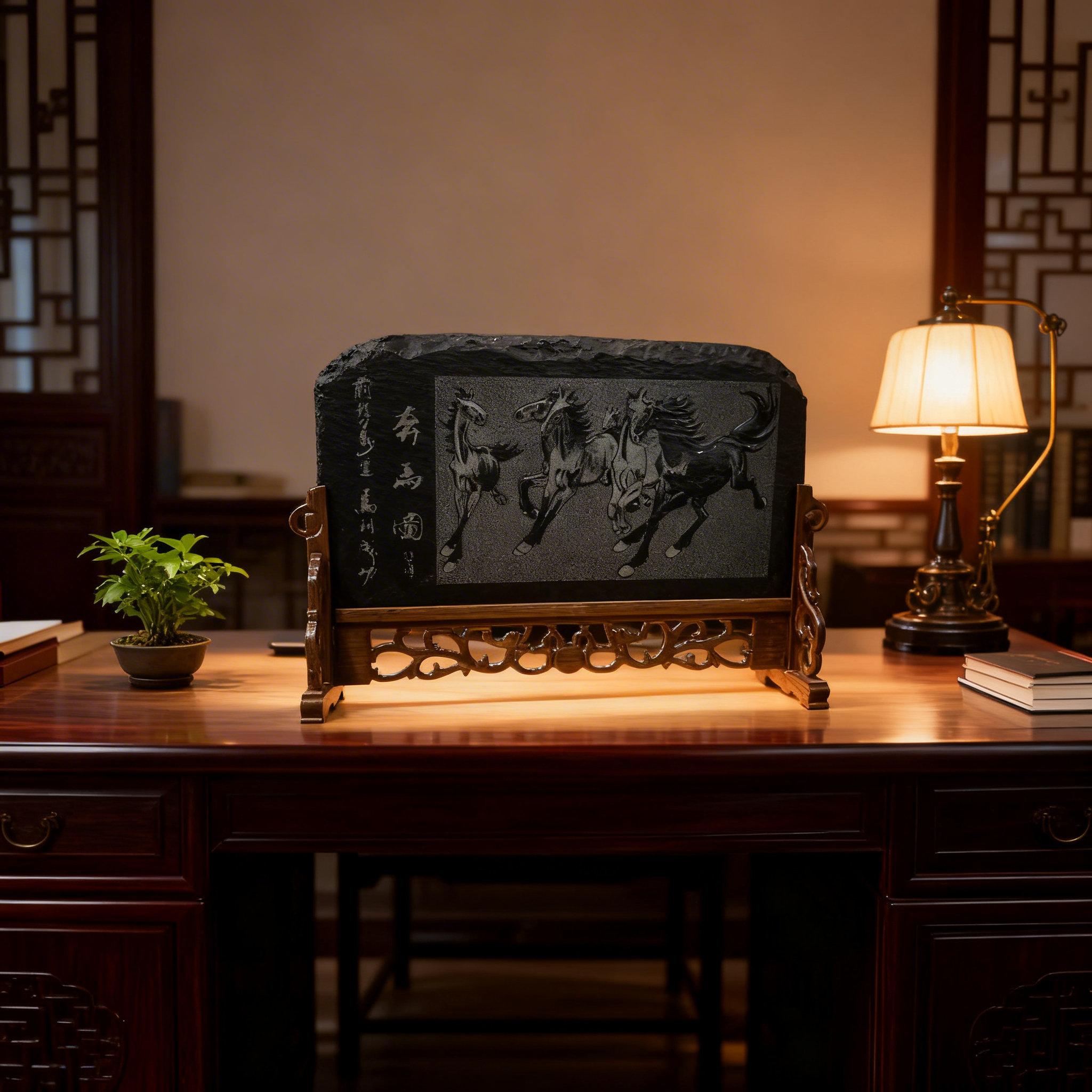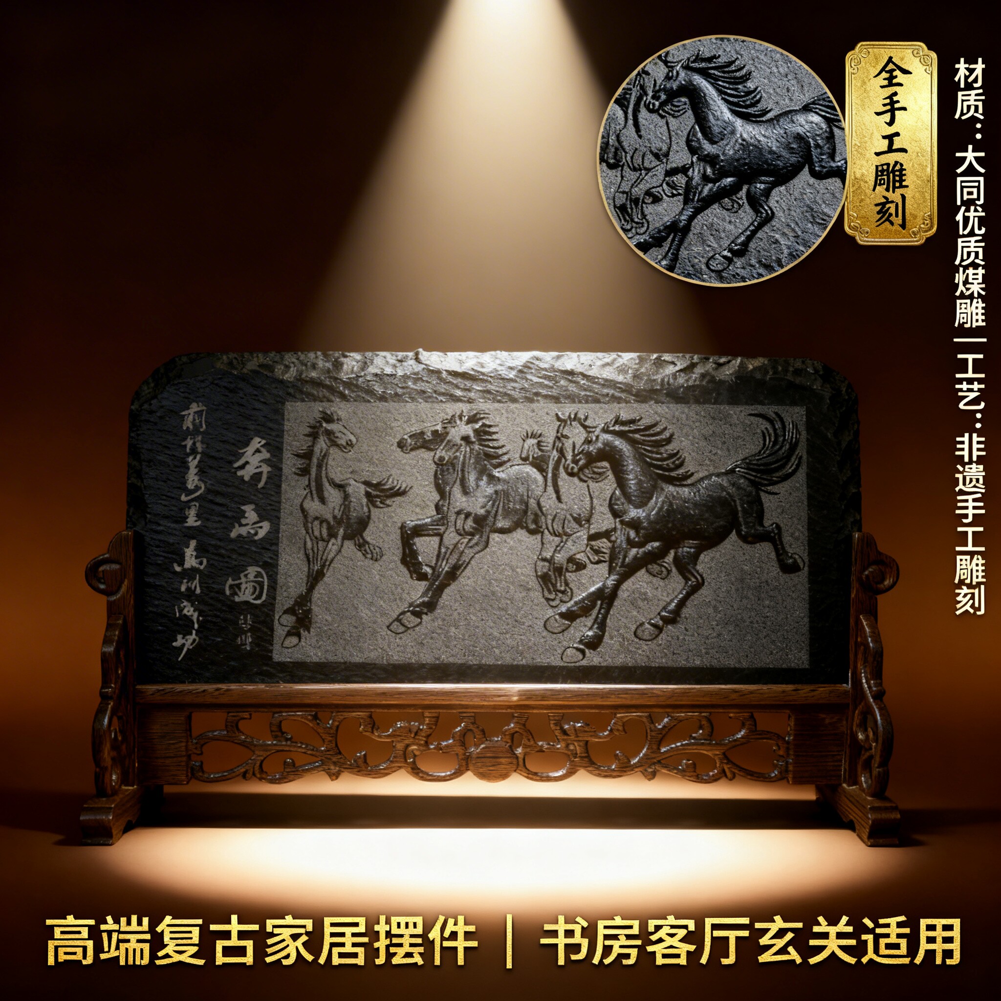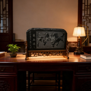梓云轩晋艺煤雕纯手工非遗手艺精品家居装 饰办公桌面马到成功摆件