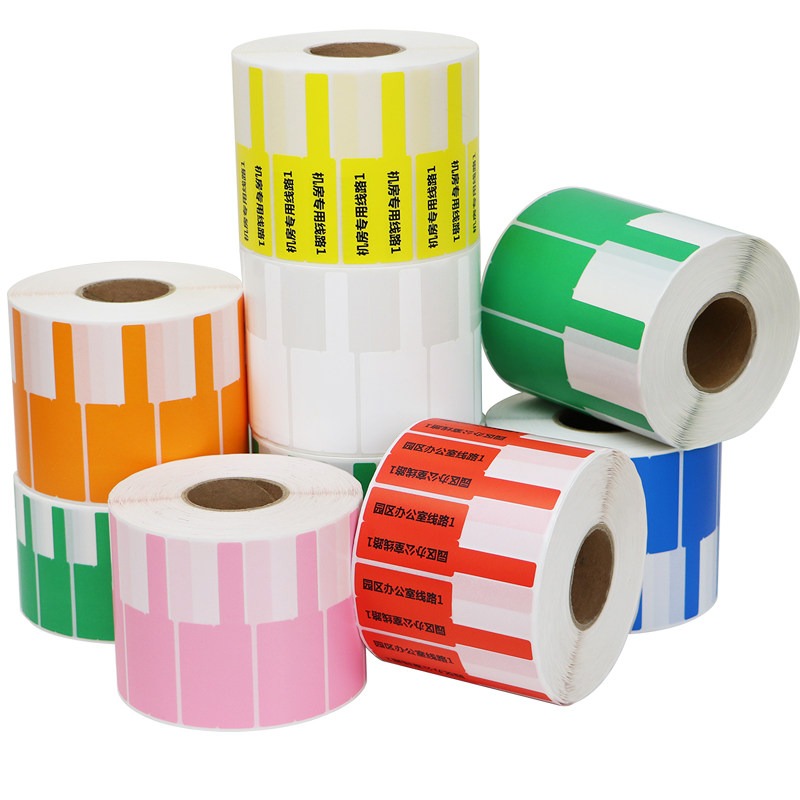强粘彩色线缆标签纸刀型贴纸卷装 机标识打印纸定制 数据线通信电缆源电线不干胶机房线标网线电力光纤线路条码