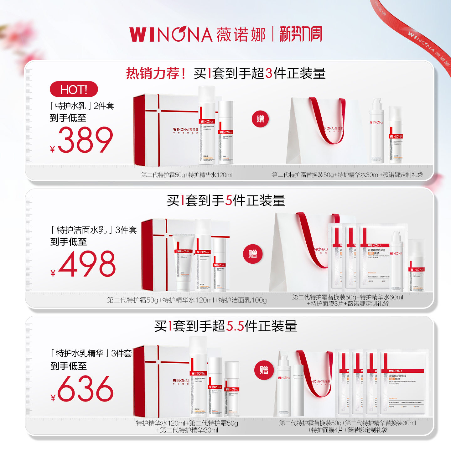 爽肤水护肤品礼盒 修护退红补水保湿 薇诺娜敏感肌水乳套装 特护霜