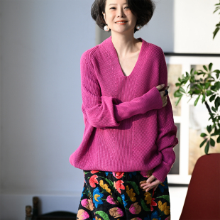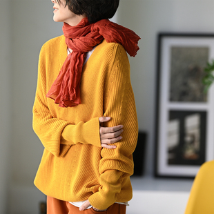包邮 V领套头针织衫 Z8160C 宽松蝙蝠袖 女秋 文艺简约气质设计款