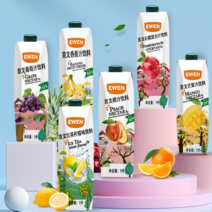 EWEN意文果汁饮料1L 12进口芒果汁石榴汁香蕉汁桃汁葡萄汁冰红茶