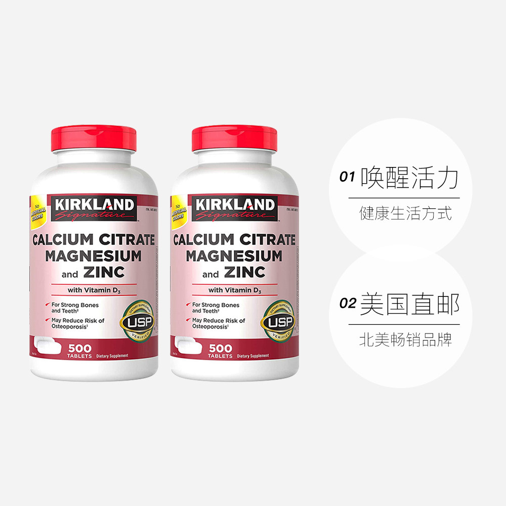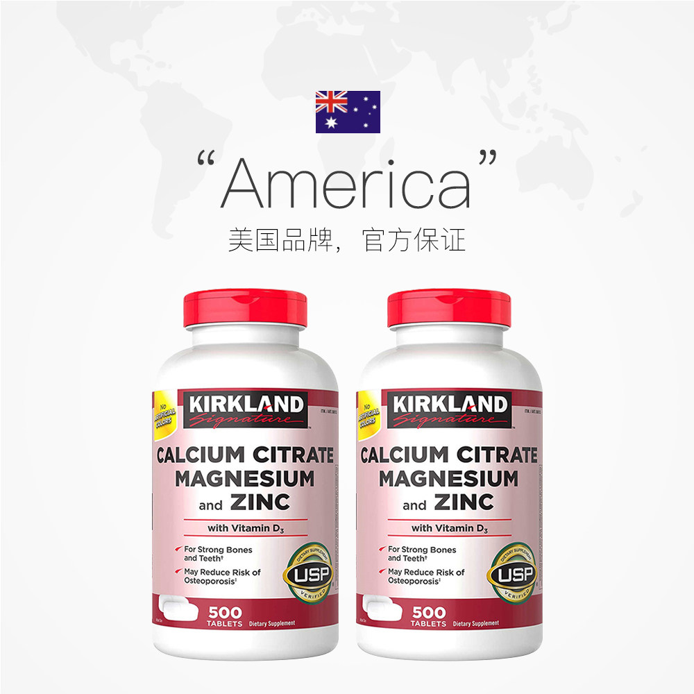 瓶 美国进口Kirkland柯克兰柠檬酸钙镁锌维生素D3500粒 自营