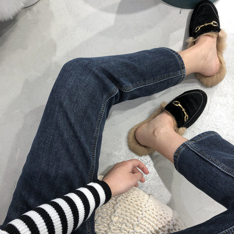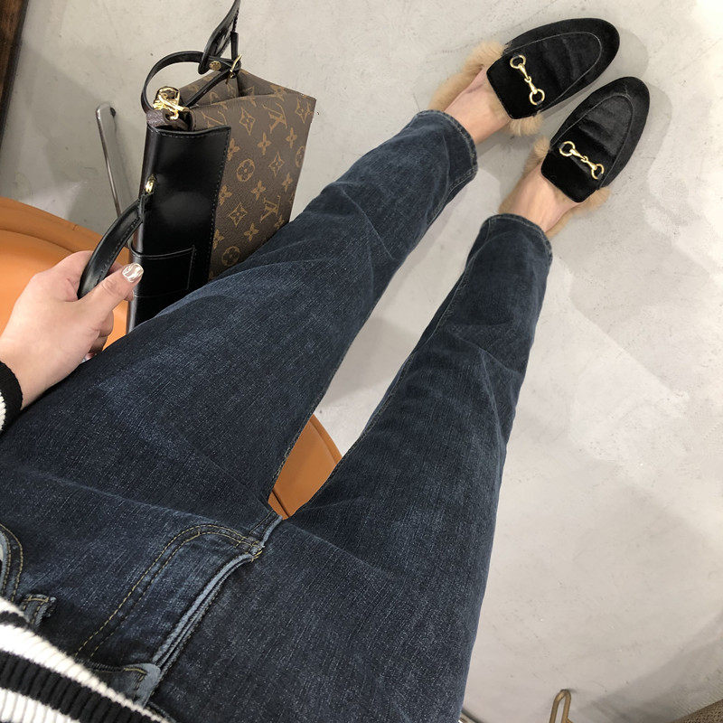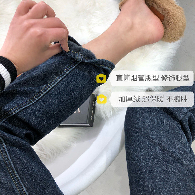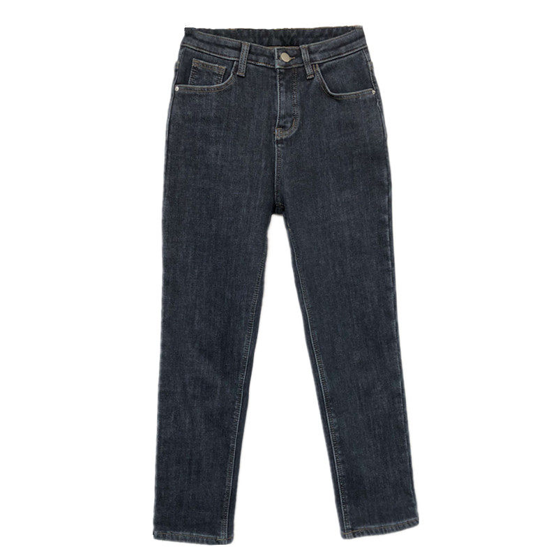 弹力高腰修身 女 厚绒直筒牛仔裤 显瘦加绒九分烟管裤 王炸神裤