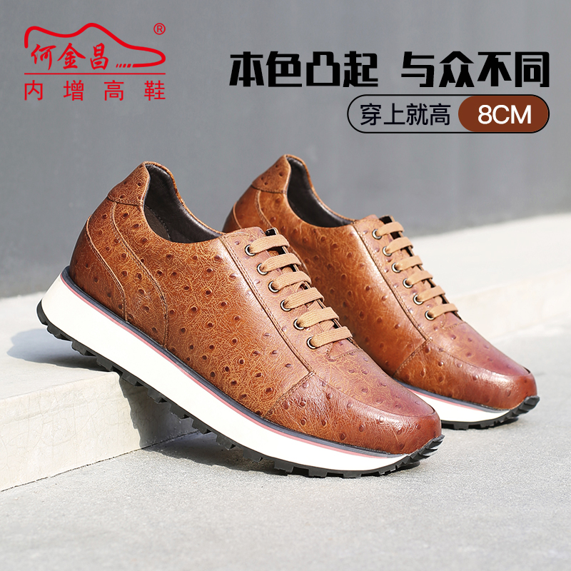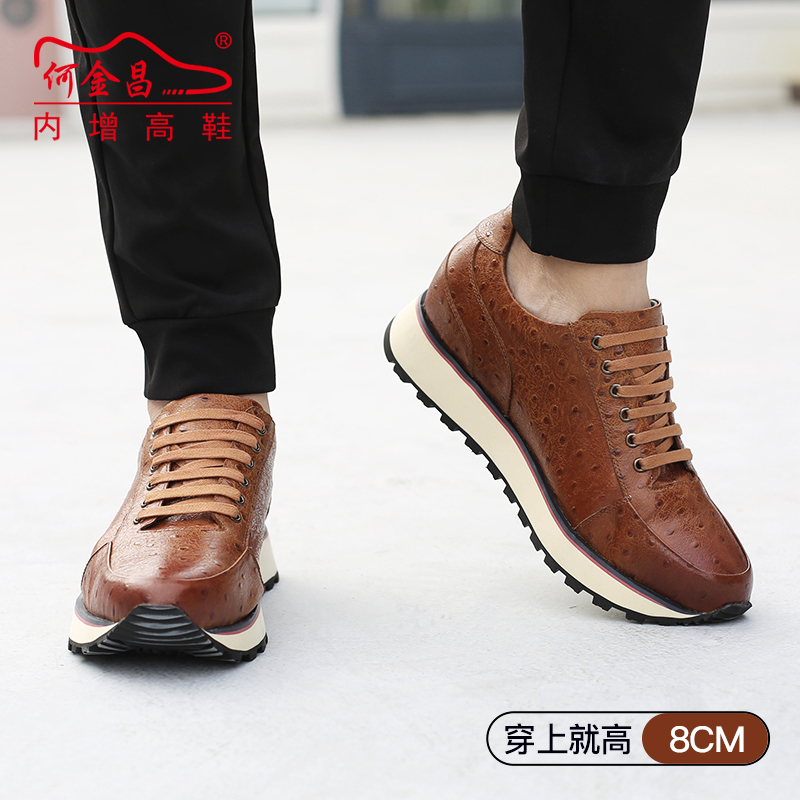 精品潮男鞋 何金昌增高鞋 英伦街头鸵鸟皮运动鞋 户外休闲鞋 8CM 男士