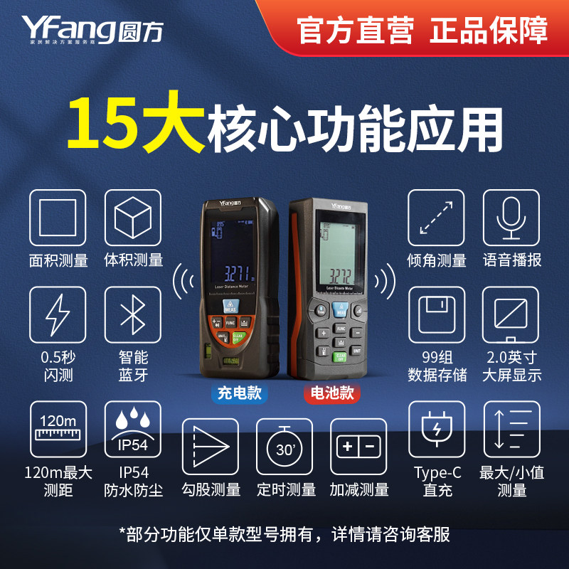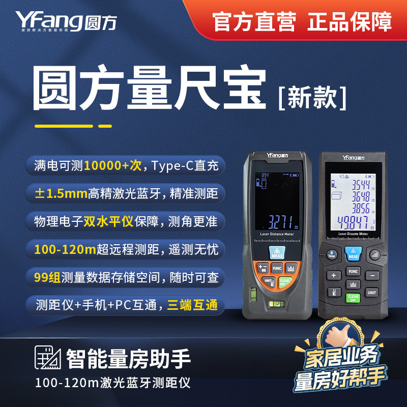 圆方量尺宝高精激光测距仪 修工程红外线测量仪器 量房蓝牙绘图装
