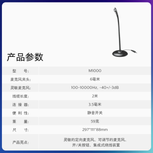 飞利浦麦克风SHM1000台式 电脑话筒网课游戏直播唱歌话筒有线3.5mm