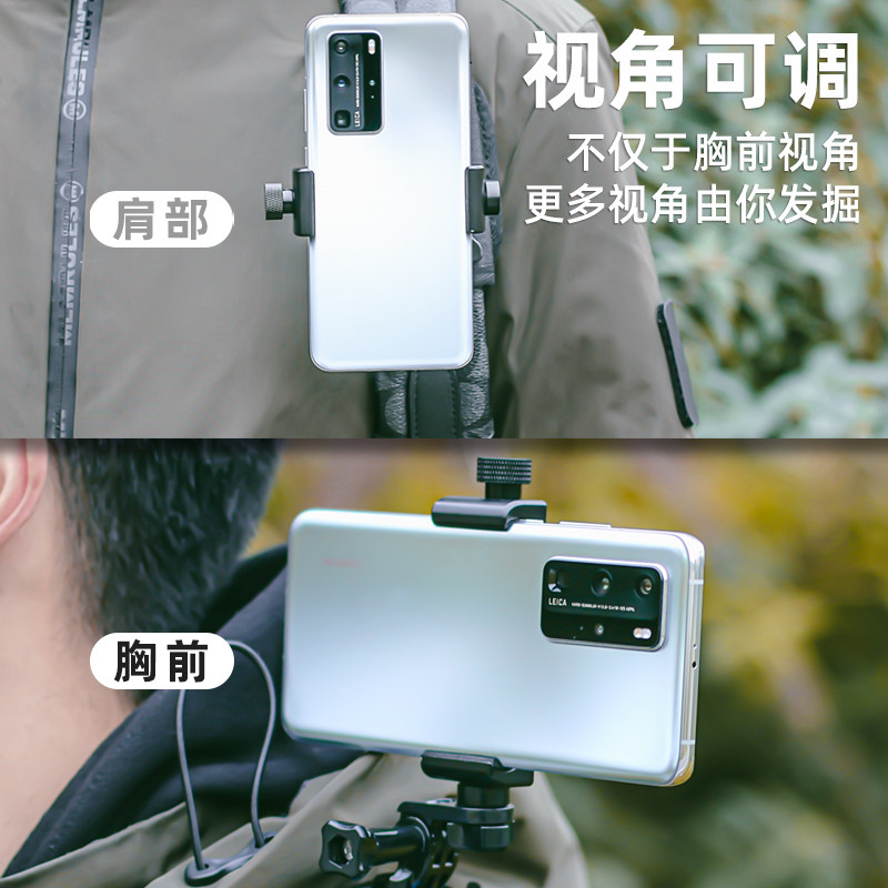 双肩背包手机夹第一人称视角手机胸前固定拍摄支架户外直播抖音拍视频便携手机架自媒体录像设备vlog神器夹子