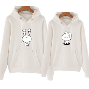 秋冬闺蜜姐妹装 卫衣男女连帽bf慵懒风上衣服外套 流氓小白兔情侣装