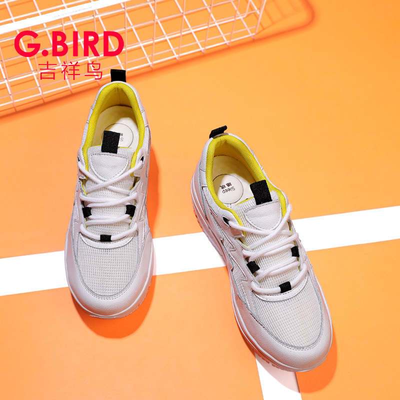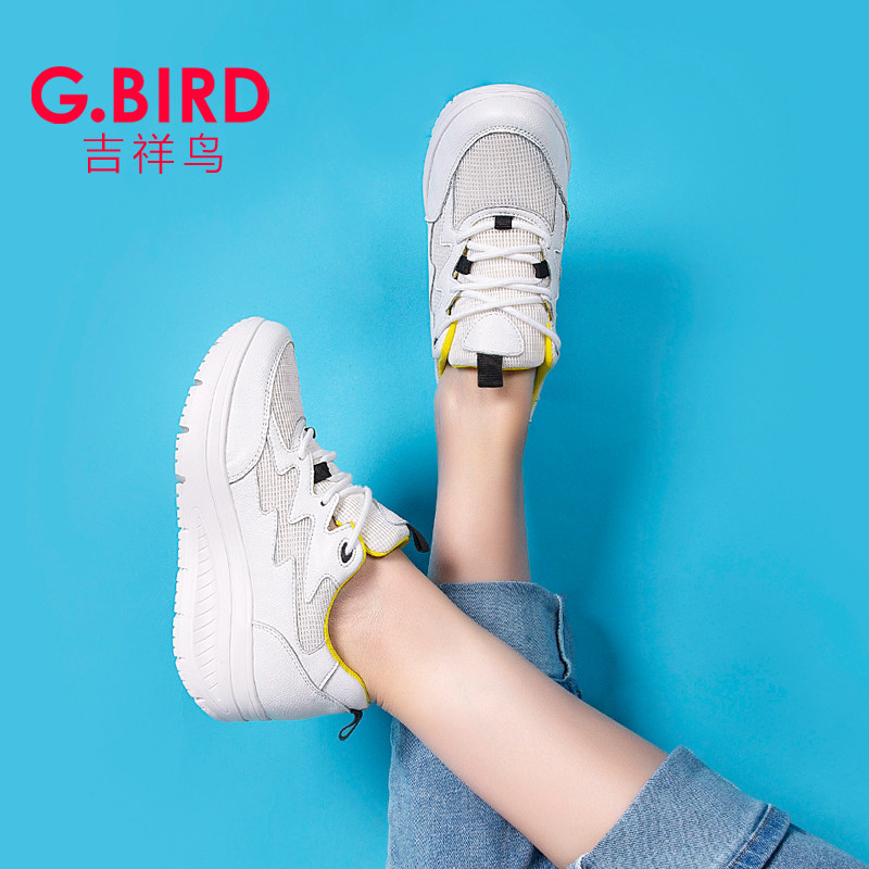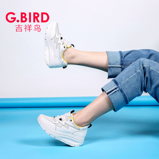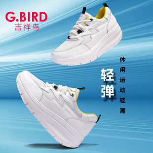 1008 真皮休闲百搭摇摇厚底松糕系带舒适健步鞋 吉祥鸟超轻女鞋 新款