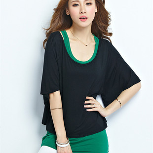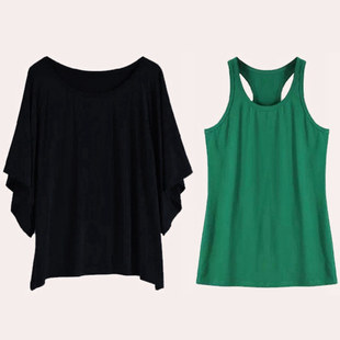 时尚 两件套装 新款 胖mm显瘦t恤莫代尔夏装 百搭圆领宽松上衣女 大码