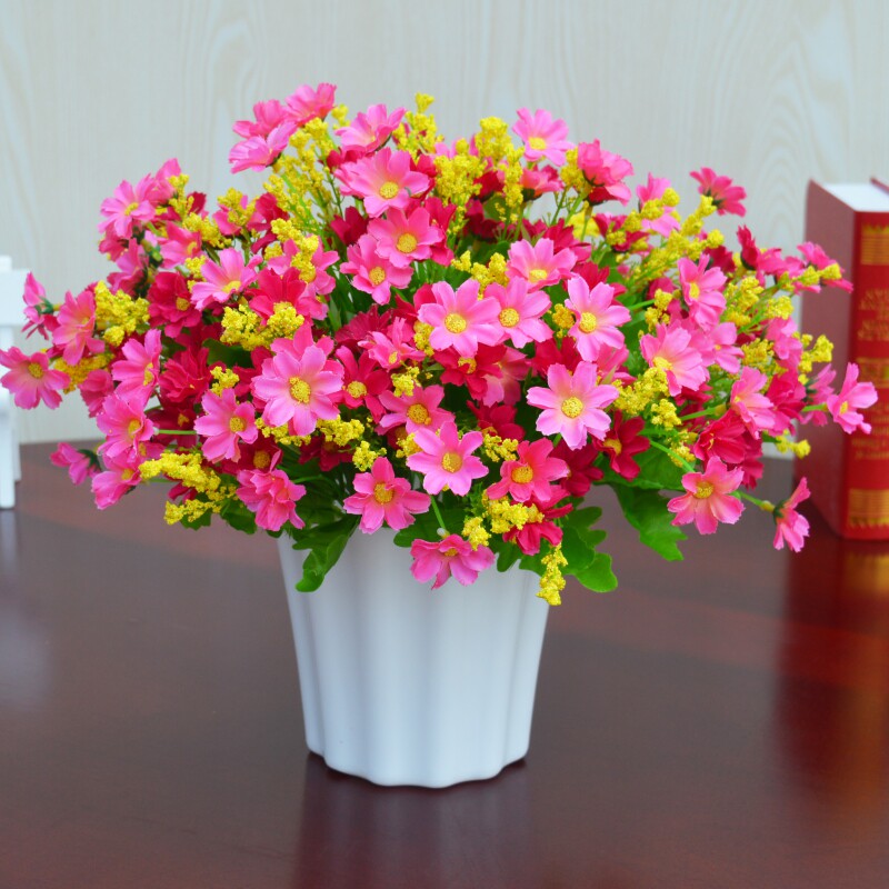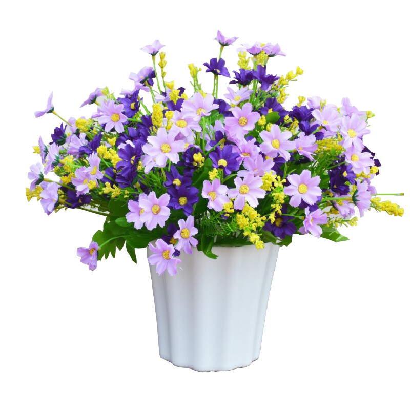 仿真植物假花草塑料花雏菊套装 饰品摆设件塑料绢花盆栽 家居室内装