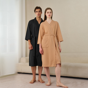 浴袍女夏天吸水速干浴衣加肥大码 男士 华夫格睡袍情侣睡衣 薄款 夏季