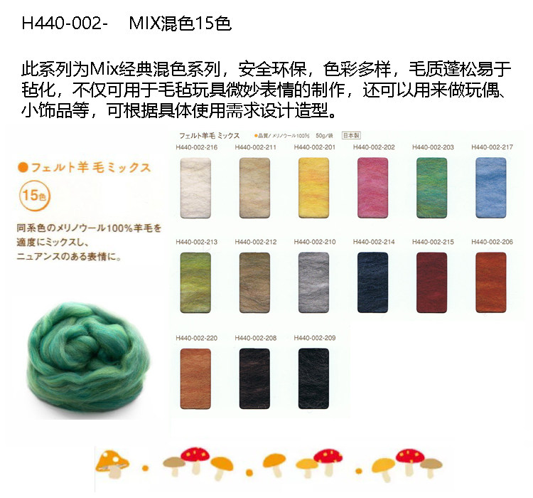 日本Hamanaka原装 50G装 进口羊毛毡戳戳乐H440 MIX混色 002 8折