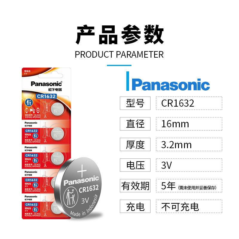 松下CR1632纽扣电池3V锂适用比亚迪凯美瑞汽车钥匙遥控器原装 进口