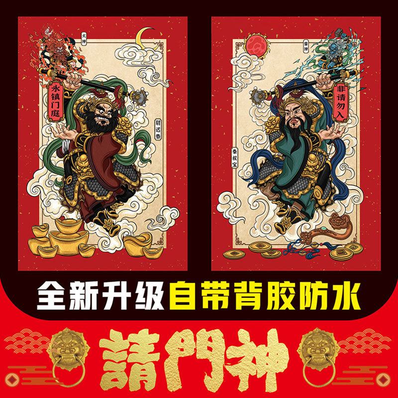 2026马年新款 门神贴大门防盗门秦叔宝尉迟恭单门入户自粘防水门神