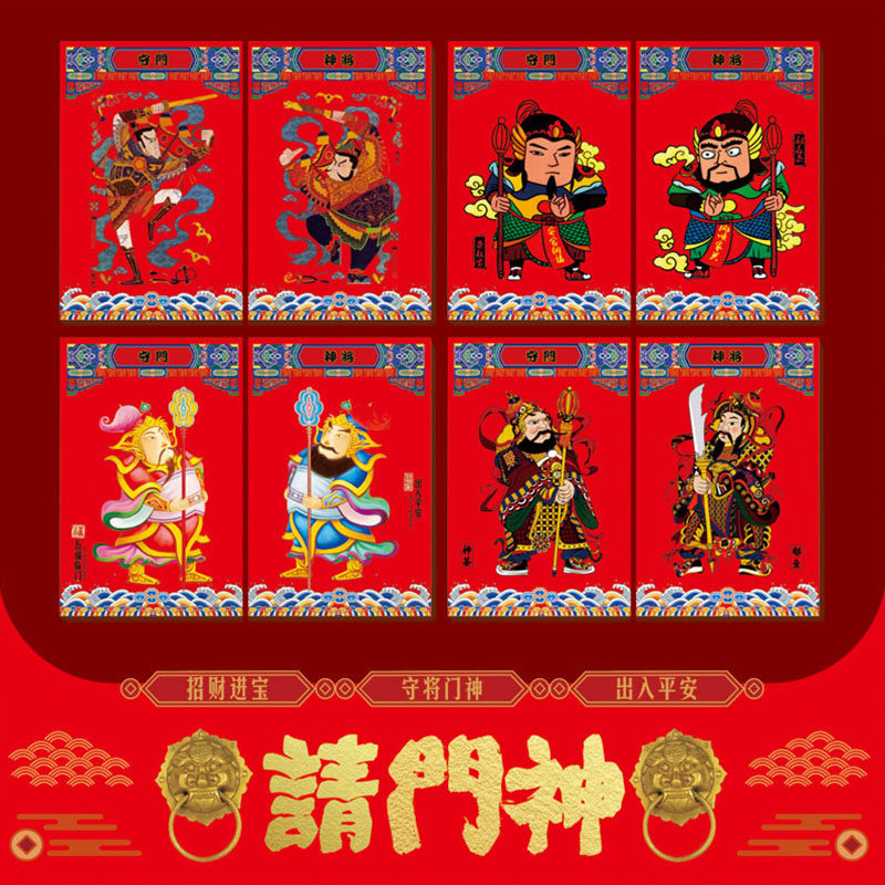 2026五行镇宅门神门贴福字保家秦叔宝尉迟恭年画大门张飞关羽批发