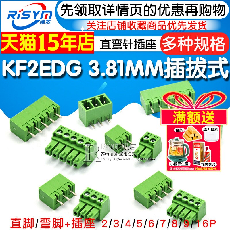 16p 插座2 pcb接线端子弯直针 KF2EDG 3.81MM插拔式