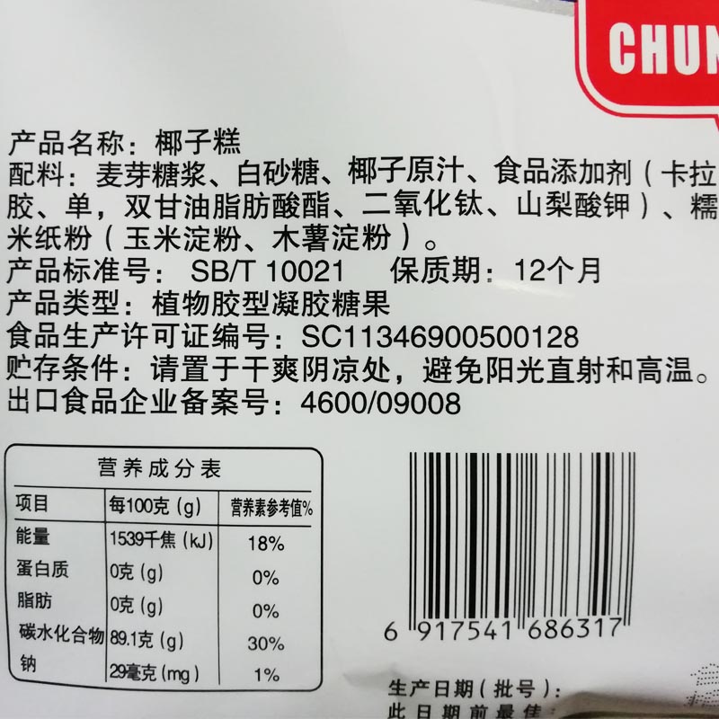 春光椰子糕450克X2袋椰子软糖有嚼劲 不粘牙零食糖果海南三亚特产