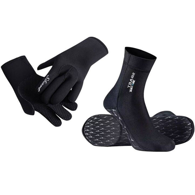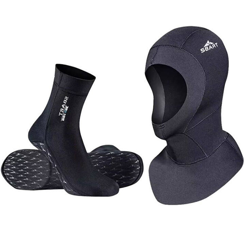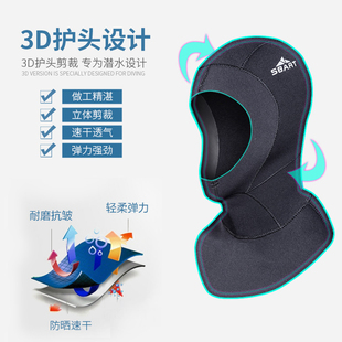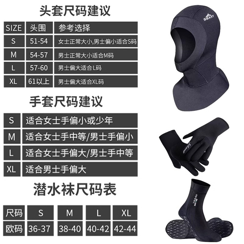 鲨巴特加厚3MM潜水帽保暖头套手套潜水袜防晒护脸帽防水母脸基尼