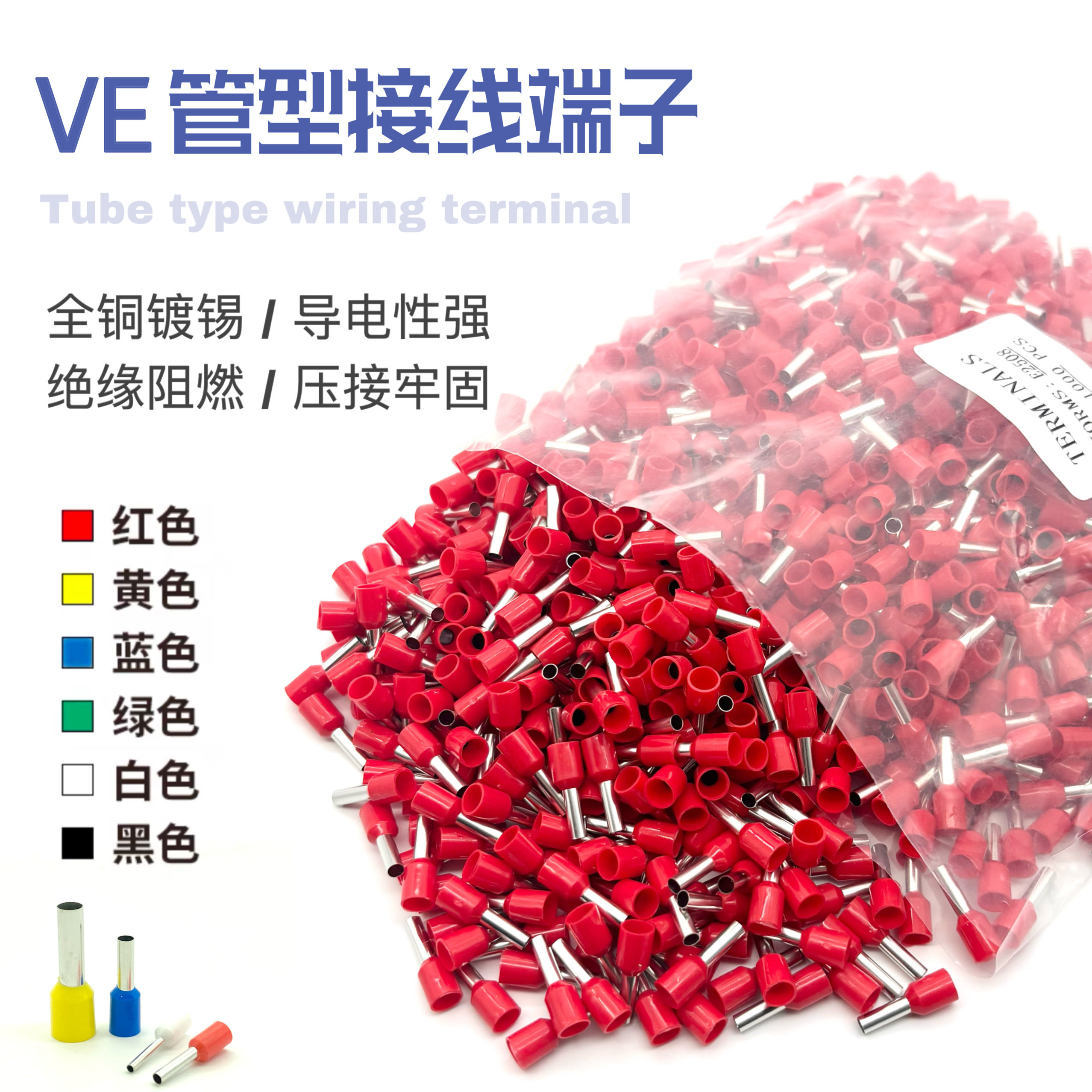 E1508 E1008 E2508管型针型冷压接线端子铜线耳鼻子 E7508 VE0508