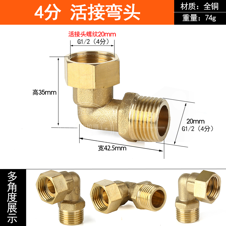 4分黄铜加厚三通接头三内丝一内二外三外丝燃气管热水器水管配件